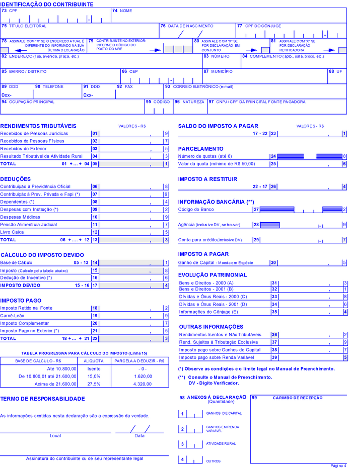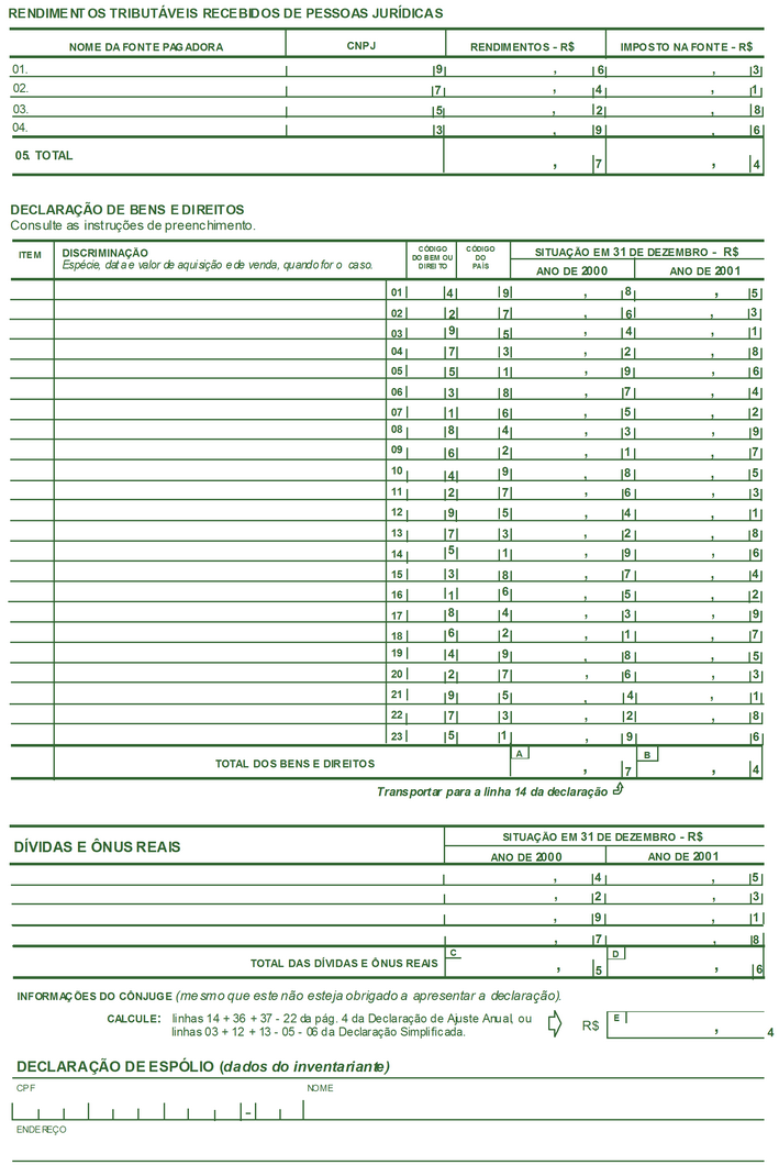 O SECRETÁRIO DA RECEITA FEDERAL, no uso da atribuição que lhe conferem os incisos III e XVIII do art. 209 do Regimento Interno da Secretaria da Receita Federal, aprovado pela Portaria MF no 259, de 24 de agosto de 2001, e tendo em vista o disposto no art. 7o da Lei nº 9.250, de 26 de dezembro de 1995, e no art. 16 da Lei nº 9.779, de 19 de janeiro de 1999, resolve: Art. 1º Aprovar os formulários para a Declaração de Ajuste Anual do Imposto de Renda Pessoa Física do exercício de 2002, ano-calendário de 2001, conforme modelos em anexo, a serem impressos em papel ofsete branco de primeira qualidade, com a observância das seguintes especificações: I - Declaração de Ajuste Anual, com quatro páginas, no formato A4, na gramatura de 75 g/m2 e impressão na cor azul, código Pantone 299 U (Anexo I); II - Declaração de Ajuste Anual Simplificada, com duas páginas, no formato A4 de 210 mm x 297 mm, na gramatura de 75 g/m2 e impressão nas cores verde escuro e verde claro, código Pantone 555 U (Anexo II); III - Demonstrativo da Apuração dos Ganhos de Capital, com duas páginas, formato A4, na gramatura de 75 g/m2 e impressão na cor preta (Anexo III); IV - Demonstrativo da Apuração dos Ganhos de Capital - Alienação de Bens ou Direitos ou Liquidação ou Resgate de Aplicações Financeiras Adquiridos em Moeda Estrangeira, com uma página, formato A4, na gramatura de 75 g/m2 e impressão na cor preta (Anexo IV); V - Demonstrativo da Apuração dos Ganhos de Capital - Alienação de Moeda Estrangeira Mantida em Espécie, com uma página, formato A4, na gramatura de 75 g/m2 e impressão na cor preta (Anexo V); VI - Demonstrativo da Atividade Rural, com duas páginas, formato A4, na gramatura de 75 g/m2 e impressão na cor preta (Anexo VI); VII - Recibo de Entrega da Declaração de Ajuste Anual, com duas páginas, formato A5 de 148 mm x 210 mm, na gramatura de 75 g/m2 e impressão na cor azul, código Pantone 299 U (Anexo VII). Art. 2º Os formulários a que se referem os incisos IV e V do art. 1º e as respectivas instruções para seu preenchimento estarão disponíveis na página da Secretaria da Receita Federal na Internet, no seguinte endereço: <http://www.receita.fazenda.gov.br>. Art. 3º As empresas interessadas ficam autorizadas a imprimir e a comercializar os formulários de que trata esta Instrução Normativa. § 1º As artes-finais para impressão dos formulários serão fornecidas pela Divisão de Tecnologia e Segurança da Informação (Ditec) das Superintendências Regionais da Secretaria da Receita Federal. § 2º Os formulários destinados à comercialização deverão conter, no rodapé, o nome e o número de inscrição no Cadastro Nacional da Pessoa Jurídica (CNPJ) da empresa impressora. § 3º Os formulários que não atenderem às especificações contidas neste ato estarão sujeitos à apreensão pelas autoridades da Secretaria da Receita Federal. Art. 4º Esta Instrução Normativa entra em vigor na data de sua publicação. Art. 5º Ficam formalmente revogadas: I - sem interrupção de sua força normativa, a Instrução Normativa SRF nº 122/00, de 28 de dezembro de 2000; II - a Instrução Normativa SRF nº 111, de 31 de dezembro de 2001. EVERARDO MACIEL Anexos