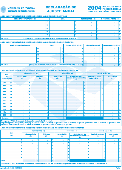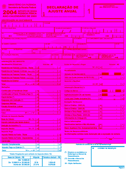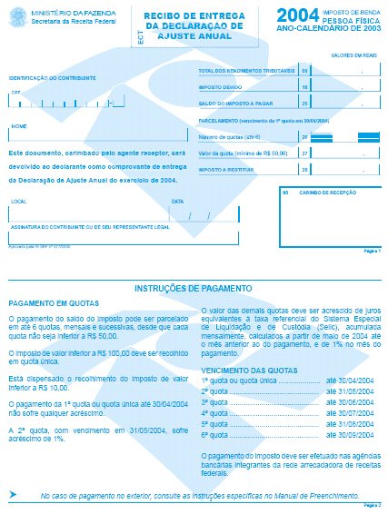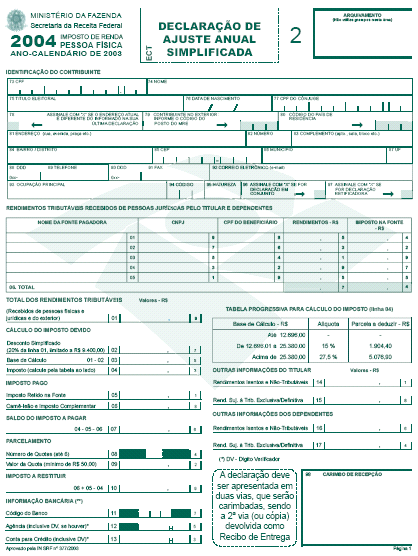O SECRETÁRIO DA RECEITA FEDERAL, no uso da atribuição que lhe conferem os incisos III e XVIII do art. 209 do Regimento Interno da Secretaria da Receita Federal, aprovado pela Portaria MF no 259, de 24 de agosto de 2001, e tendo em vista o disposto no art. 7º da Lei nº 9.250, de 26 de dezembro de 1995, e no art. 16 da Lei nº 9.779, de 19 de janeiro de 1999, resolve: Art. 1º Ficam aprovados os formulários para a Declaração de Ajuste Anual do Imposto de Renda da Pessoa Física do exercício de 2004, ano-calendário de 2003, conforme modelos em anexo, a serem impressos em papel off set branco de primeira qualidade, com a observância das seguintes especificações: I - Declaração de Ajuste Anual, com quatro páginas, no formato revista (entre 202 e 210 mm de largura e entre 266 e 280 mm de altura), na gramatura de 75 g/m2 e impressão na cor azul, código CMYK: azul = 90 (noventa), magenta = 30 (trinta), amarelo = 0 (zero) e preto = 0 (zero) (Anexo I); Art. 2º As empresas interessadas ficam autorizadas a imprimir e a comercializar os formulários de que trata esta Instrução Normativa. § 1º As artes-finais para impressão dos formulários serão fornecidas pelas Superintendências Regionais da Secretaria da Receita Federal. § 2º Os formulários destinados à comercialização deverão conter, no rodapé, o nome e o número de inscrição no Cadastro Nacional da Pessoa Jurídica (CNPJ) da empresa impressora. § 3º Os formulários que não atenderem às especificações contidas neste ato estarão sujeitos à apreensão pelas autoridades da Secretaria da Receita Federal. Art. 3º Esta Instrução Normativa entra em vigor na data de sua publicação. Art. 4º Fica formalmente revogada, sem interrupção de sua força normativa, a Instrução Normativa SRF nº 271, de 30 dezembro de 2002. JORGE ANTONIO DEHER RACHID Anexos